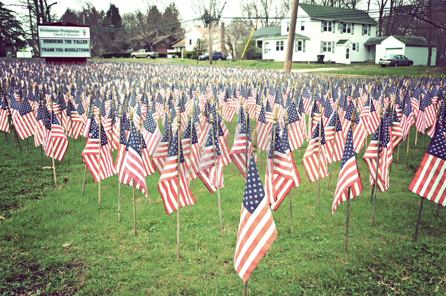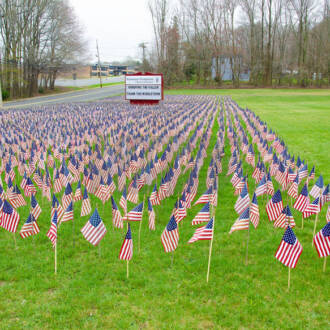 A church in the United States honors the fallen service men and women of the Iraq and Afghanistan conflicts by installing more than 6,000 American flags on their front lawn.