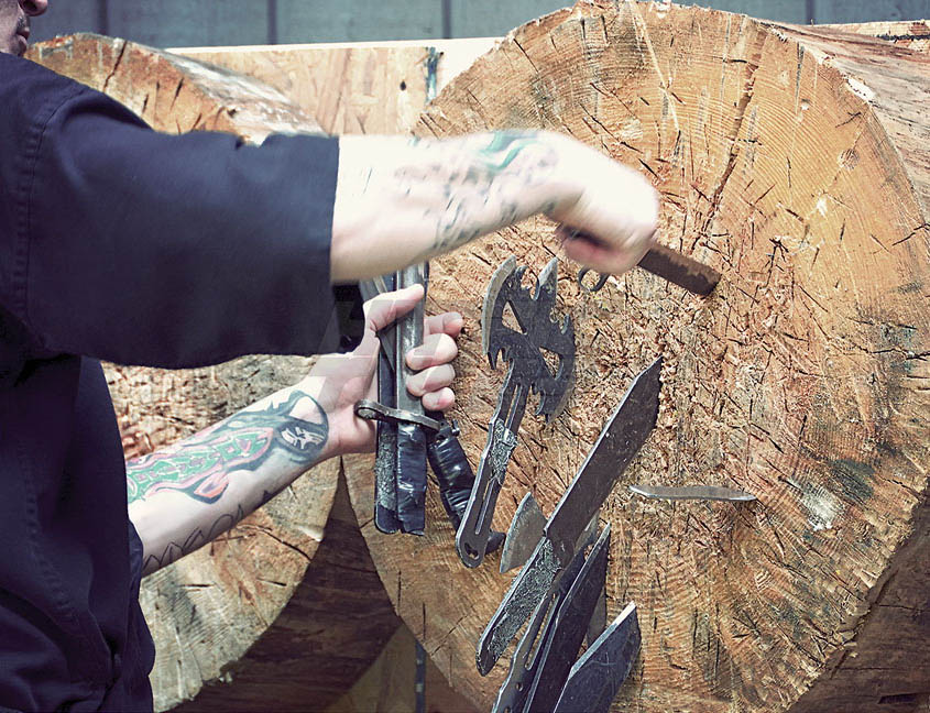 Tomahawk and Knives Tree Trunk Target Jujutsu Martial Arts Training Photo