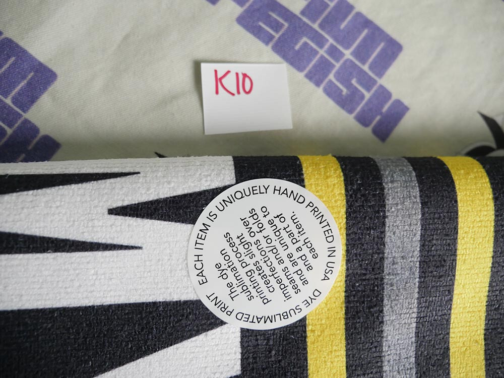 - The dye sublimation printing process creates slight imperfections over seams and/or folds. They are unique to and a part of each towel.