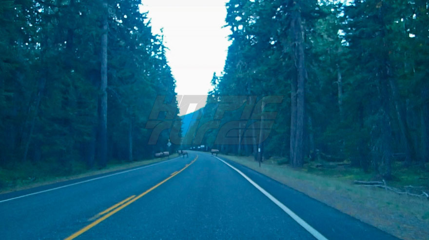 Roosevelt Elk Crossing a Roadway Leading into Mount Rainier National Park, Washington State